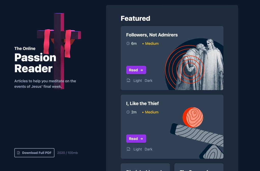The Passion Reader articles, reimagined in multimedia and interactive formats.